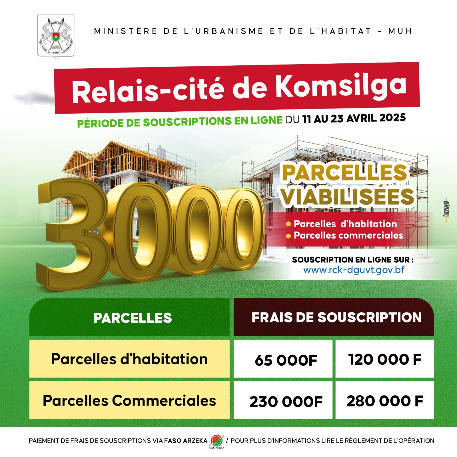 OPÉRATION RELAIS-CITÉ DE KOMSILGA: Communiqué et règlement